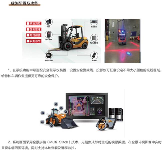 1.基于360°全景環(huán)視監(jiān)控技術(shù),任意設(shè)定警戒區(qū)域、危險區(qū)域大小及形狀,無死角保護(hù)車輛設(shè)備駕駛作業(yè)安全,最大偵測范圍4-5米,防撞距離掃描達(dá)20米以上,安裝投影儀可設(shè)置警戒線,投影光線在地面形成一個安全范圍